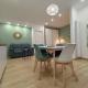 Guests benefit from amenities such as cable TV channels on the flat-screen television alongside bedside sockets and internet access throughout the apartment. Additional conveniences include safety deposit box facilities, ironing equipment, washing machine, heating, wardrobe, sofa seating area, work desk, non-feather pillows, clothes drying rack plus baby cot availability. Free parking onsite complements services like express check-in/out with private check-in options available.